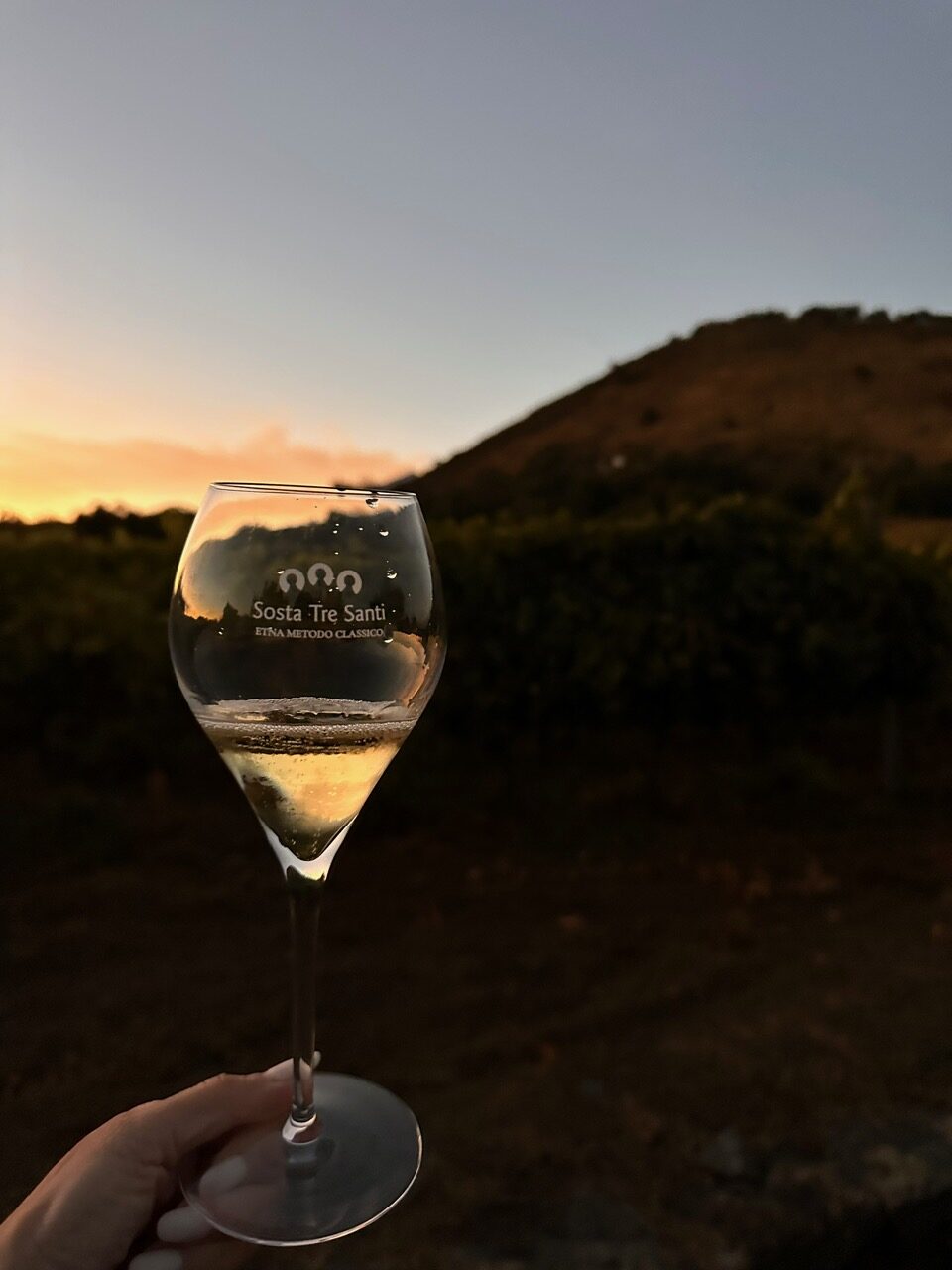 Si prosegue con le bollicine “Sosta Tre Santi”, la faccia più luminosa e conviviale dell’Etna. Metodo classico da uve autoctone, dal blanc de noir di Nerello Mascalese al Carricante dalle sfumature floreali, fino alle versioni a lunga permanenza sui lieviti, dove cremosità e freschezza si fondono con la tipica salinità lavica.
