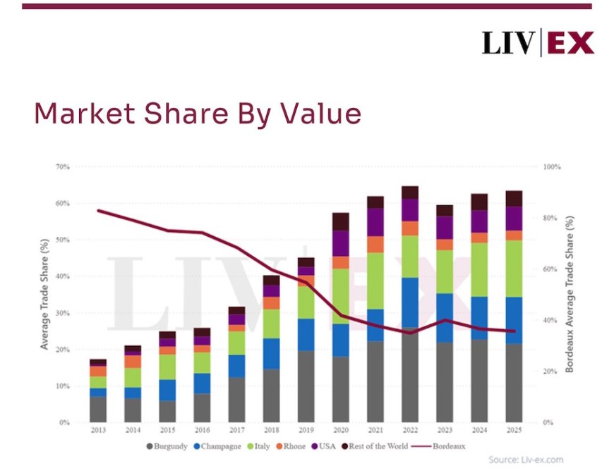 Secondo i dati Liv-ex di fine anno, i vini italiani superano il 25% dei volumi scambiati sul mercato secondario, raggiungendo il livello più elevato degli ultimi due anni. Un risultato frutto di una presenza graduale che ha rafforzato nel tempo il peso dell’Italia negli scambi internazionali.