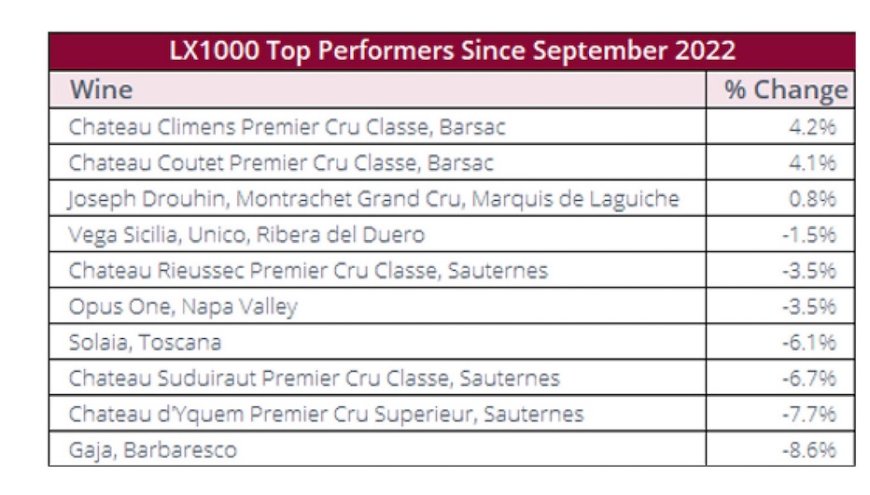 Liv-ex 1000 Top Performers: tra i migliori performer dal picco del 2022 compaiono etichette che hanno mantenuto una maggiore continuità di valore, più che crescite speculative