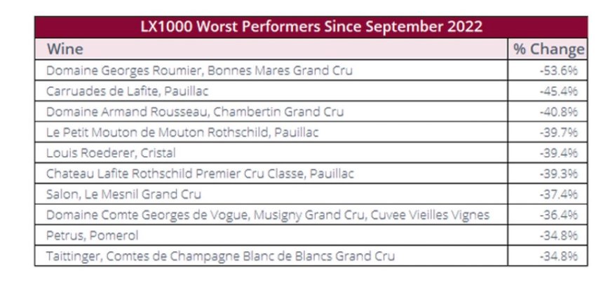 Liv-ex 1000 Worst Performers: le etichette che avevano registrato le crescite più rapide durante il bull market risultano oggi le più esposte alla fase di correzione