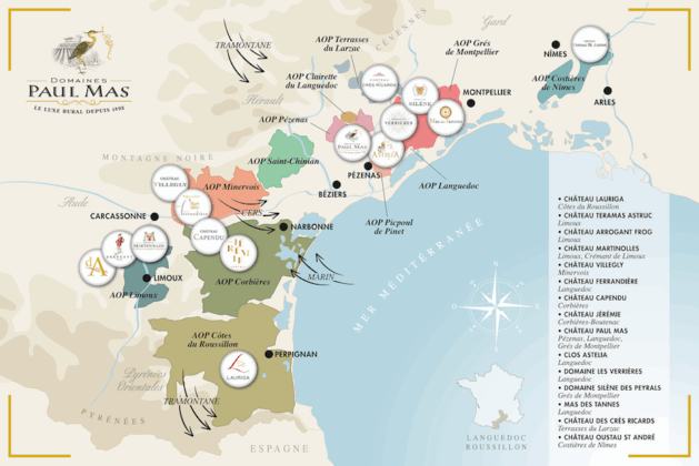 I Domaines Paul Mas hanno raccontato al Merano WineFestival 25 anni di storia del Languedoc-Roussillon, la più vasta area vitata della Francia, attraverso la degustazione “Il lusso rurale del Sud della Francia” condotta da Thomas Taddeo, responsabile Italia dei Domaines Paul Mas, affiancato dal giornalista Marco Sciarrini. Un incontro che ha ricostruito l’intreccio di territorio, memoria e visione moderna di un’azienda che oggi conta 2.500 ettari tra proprietà e conferitori storici, presenza in 89 Paesi, una produzione che supera i 20 milioni di bottiglie e 45 vitigni coltivati.